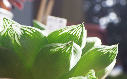 ハオルチアの交配種らしい(グリーンジェム×マジョール)私の写真の腕じゃ魅力を伝えきれないのが残念(°p°)